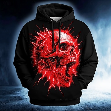 Voor heren Doodskoppen 3D Trui met capuchon Sweatshirt Punk overdreven Gotisch Casual Lange mouw Strakke ronde hals Capuchon Streetwear Club blauw Rood Groen Grijs Trekkoord Herfst Winter Ontwerper S