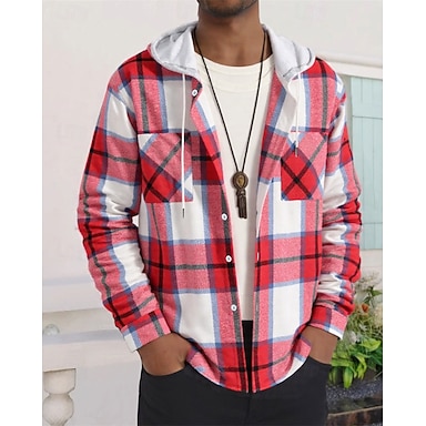 Voor heren Lichtgewicht jack Overhemdjack Vrijetijdsjas shacket Vakantie Dagelijks Ademend Zak Lente Herfst Ruitjes Modieus Klassiek Capuchon Normaal Wijn Rood blauw Groen Jacks