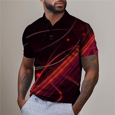 Voor heren Geometrisch Poloshirts Golfshirt Korte mouw Poloshirt Overhemden met kraag Zakelijk informeel Vakantiekleding Formele kleding Festivalkleding Knop 3D-afdrukken Zomer Wijn Rood Blauw