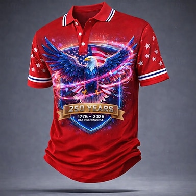 4 juli 2026 250e Voor heren Amerikaanse Amerikaanse vlag Poloshirts Korte mouw Poloshirt Overhemden met kraag Casual Buiten Sportkleding Knop Lente zomer blauw Rood Grijs