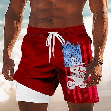 Voor heren 4 juli, 250e verjaardag van de VS Amerikaanse vlag Gevoerde shorts 2 in 1 zwemshorts Zwemshorts Medium Taille Vaderlandslievend Feestdagen Zijzakken Met compressievoering Elastische