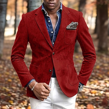 Voor heren Blazer liiketoiminta Cocktailparty Bruiloft Modieus Casual Lente Herfst Polyester Effen Zak Knop Comfortabel Enkele rij knopen Blazer Zwart Rood Groen Grijs