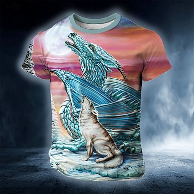 Voor heren Grafisch dier Wolf Draak Hulppatroon T-shirt Korte mouw T-shirt 3D-afdrukken Strakke ronde hals Overhemd overdreven Dagelijks Ontwerper Feestdagen Uitgaan Zwart Rood Oranje Lente zomer