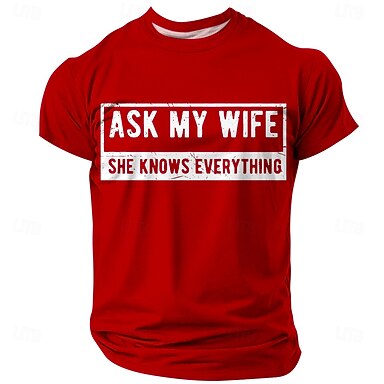 Mannen's Grappige Graphic T-Shirt 'Vraag Mijn Vrouw Ze Weet Alles' Echtgenoot Humor