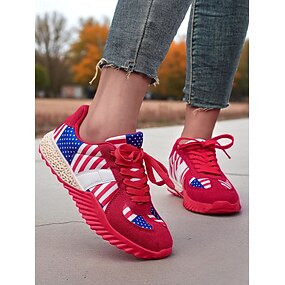 Damesblauwe patriottische instapsneakers – lichtgewicht, ademende wandelschoenen met Amerikaanse vlag en een grafisch ontwerp ter ere van 250 jaar Amerika, geschikt voor casual gebruik, feestdagen,