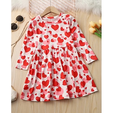 Meisjes 3D Hart Grafisch Jurk Lange mouw Zomer Lente Vakantie Dagelijks Feestdagen Prinses Mooi Zoet Kinderen 4-12 jaar Casual jurk A lijn jurk Tot de knie Normale pasvorm