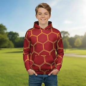 Jongens 3D Grafisch Geometrisch Trui met capuchon Lange mouw Lente Herfst Modieus Streetwear Kinderen 4-12 jaar Capuchon Buiten Casual Dagelijks Normale pasvorm