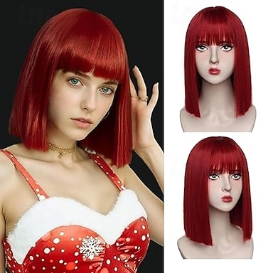 bob pruik met pony korte rechte pruik voor vrouwen hittebestendige synthetische pruik van natuurlijk haar kleurrijke bob pruiken voor meisjes dagelijks feest kerstfeest pruiken cosplay gebruik