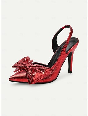 dames imitatie lakleren slingback hakken – puntige strik pumps, elegante kitten heels voor kantoor & formele gelegenheden