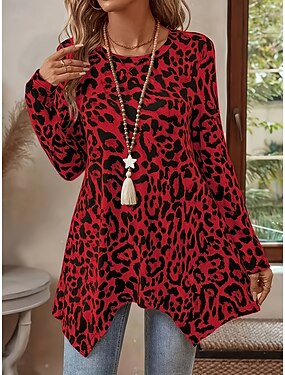 Dames Tuniek Afdrukken Grafisch Luipaard Vintage Modieus Casual Lange mouw Strakke ronde hals Lange tops Dagelijks Weekend blauw Blozend Roze Rood Paars Bruin Herfst Winter
