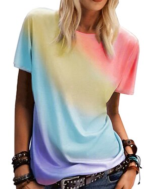 dameskleding regenbooggradiënt printen casual top ronde hals losse t-shirt met korte mouwen