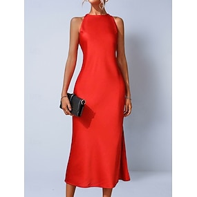 Dames Halflange jurk Satijnen Jurk Feestjurk Wikkeljurk Elegant Modieus Modern Buiten Vakantie Uitgaan Normale pasvorm Effen Mouwloos Halternek Zwart Rood Bruin Groen Zomer Lente