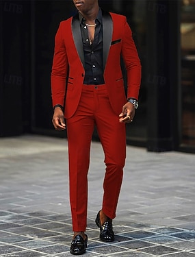 Heren Smoking Kostuums Feest Bruiloft Rood Donkergroen Lente, Herfst, Winter, Zomer Pak Inkeping Modieus Dagelijks Effen Getailleerd 2-delige set Enkele rij knopen met één knoop