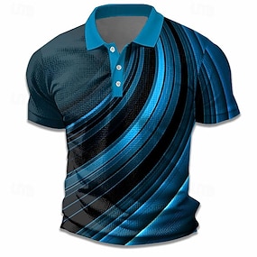 Voor heren Meetkundig Lijn Polo Korte mouw Poloshirt Overhemden met kraag Zakelijk informeel School Buiten Alledaagse kleding Huiskleding Knop 3D-afdrukken Zomer Lente Herfst blauw
