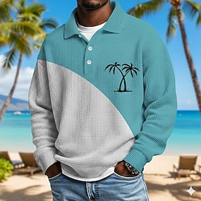 Voor heren Palmboom Wafel Poloshirts Lange mouw Poloshirt Revers Hawaii Sportkleding Alledaagse kleding Vakantiekleding 3D-afdrukken Lente Herfst Winter blauw Geel Paars