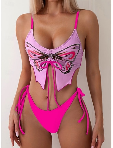 Dames Bikini 2-delige Badmode Tie Side Slank Rugloos Vakantie Strandkleding Vlinder V-hals Mouwloos Badpakken