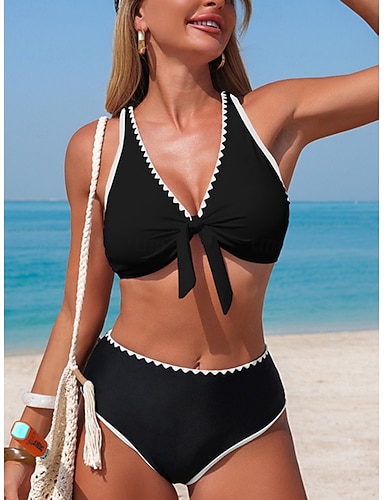 Dames Bikini 2-delig Badmode Kleurblok Slipjes Slank Achterloos Vakantie Strandkleding Kleurblok V-Hals Mouwloos Korte Mouwen Badpakken
