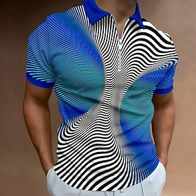 Voor heren Gestreept Poloshirts met rits Golfshirt Korte mouw Poloshirt Overhemden met kraag Zakelijk informeel Werk Kleding Formele kleding Festivalkleding 3D-afdrukken Polo met kwartrits blauw