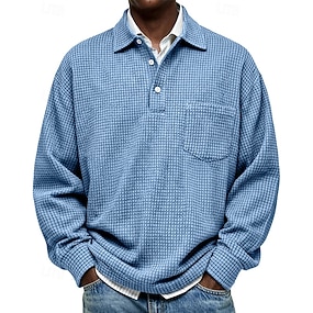 Voor heren Wafel Poloshirts Poloshirts Casual Straat Revers Lange mouw Basic Modern Effen Zak Knop Lente Herfst Normale pasvorm blauw Grijs Zwart Wit Lichtgroen Wijn Wafel Poloshirts