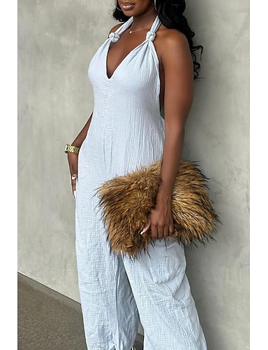Dames Normaal Jumpsuit Actief Effen Kleur Mouwloos Breed Been Halternek Zak Blote rug Dagelijks Vakantie Ruim Passend blauw Zwart Wit Zomer