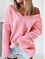 Dames Trui Casual Zacht Heldere kleur Geribd Strakke ronde hals V-hals Gebreid Koude schouder Lange mouw Normale tops breien Buiten Dagelijks Weekend Rood Herfst Winter