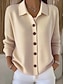 Dames Trui Elegant Casual Zacht Heldere kleur Geribd Overhemdkraag Gebreid Lange mouw Normale tops breien Buiten Dagelijks Weekend Zwart Wit Lente Herfst