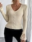 Dames Trui Casual Zacht Heldere kleur Geribd V-hals Knop Gebreid Lange mouw Normale tops breien Buiten Dagelijks Weekend Zwart Wit Herfst Winter