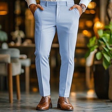 Heren Katoen linnen Pakken Formeel Hemelsblauw Beige Effen Kleur Standaard pasvorm Lang Inelastisch