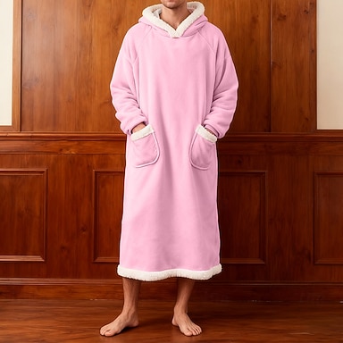 Voor heren Pyjama Nachtkleding Badjas Effen Modieus Stijlvol Klassiek Huis Dagelijks Bed Sherpa Polyester Thermisch Warm Comfort Zacht Capuchon Lange mouw Zak Zomer Lente blauw Licht Roze