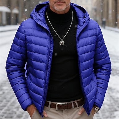 Voor heren Winterjas Donsjas Pufferjas Gewatteerde jas Zak 50% Witte eendendons Vakantie Alledaagse kleding Afspraakje Normaal Modieus Casual Comfortabel Thermisch Warm Herfst Winter Effen / effen