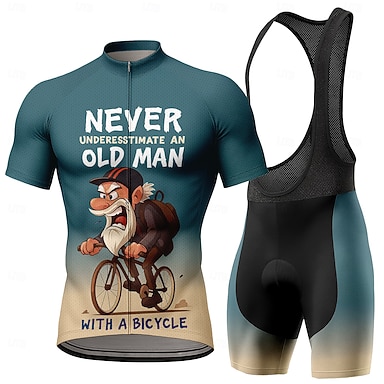 Voor heren Wielrenshirt Wielrenshirt met strakke shorts Fietsshirt set Korte mouw Zomer Geel Blauw Oranje Tekenfilm Letter en nummer Fietsen Zonbescherming UV-bestendig 3D-pad Snel Drogend