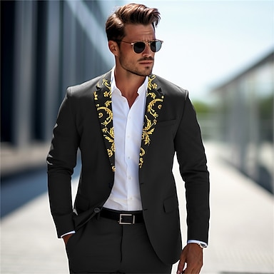 Voor heren Blazerjack Smoking Sluiting kraag Kerstmis Vintage Feest Lapwerk Blazer Zwart / groen Standaard pasvorm