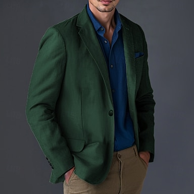 Voor heren Sportjas Linnen blazer Modieus Casual Effen Linnen blazer Leger groen Zwart blauw Getailleerd Single Breasted een knoops