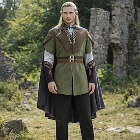 Set Vintage Middeleeuws Renaissance Broeken Mantel Hesje met accessoires Lange Mouwen Elf Kostuum Voor heren Fantasie Halloween Carnaval Renaissance beurs LARP Volwassenen Kostuum Alle seizoenen