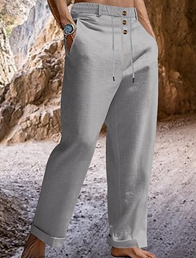 Voor heren Linnen broek Zomerbroek Strandbroeken Trekkoord Lapwerk Recht been Effen Comfort Ademend Volledige lengte Casual Dagelijks Feestdagen Vakantie Modieus Zwart Wit Inelastisch