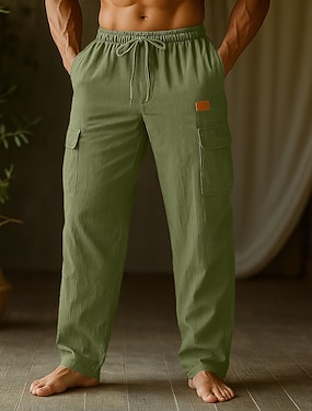 Voor heren Cargohosen Linnen broek Broek Zomerbroek Strandbroeken Trekkoord Elastische taille Meerdere zakken Effen Comfort Ademend Volledige lengte Buiten Casual Feestdagen Modieus Retro vintage