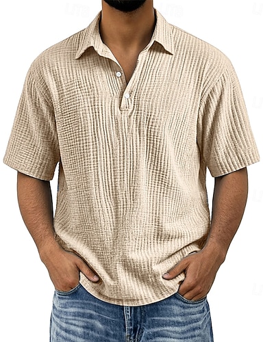 Voor heren Overhemd Zomer overhemd Strand Kleding Seersucker-shirt Effen Kleur Vakantie Straat Zwart Wit Wijn Marineblauw Korte mouw Overhemdkraag Zomer Lente Kleding Zak