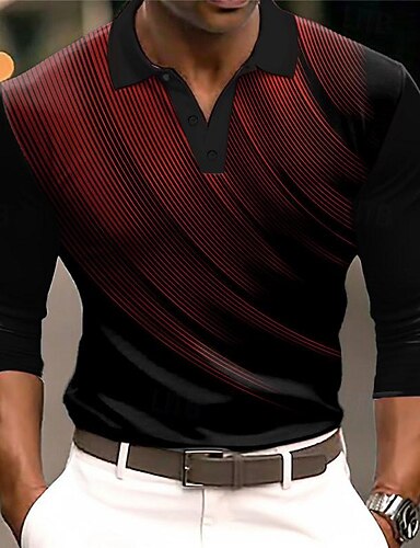 Voor heren Geometrisch Poloshirts Golfshirt Lange mouw Poloshirt Overhemden met kraag Zakelijk informeel Werk Kleding Formele kleding Festivalkleding 3D-afdrukken Knop Herfst winter Wit Wijn Blauw