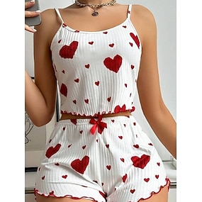 Dames Pyjamaset Casual Comfortabel Hart Elastische taille Korte broek Dagelijks Huis Mouwloos Strakke ronde hals blauw Zwart Blozend Roze Rood Zomer Lente Normale pasvorm