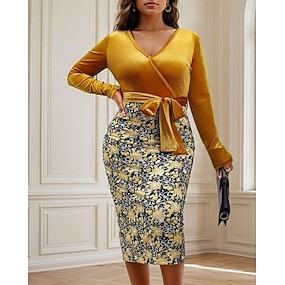 Dames Halflange jurk Casual jurk Jurk met print Vintage Modern Dagelijks Uitgaan Weekend Normale pasvorm Bloemig Lange mouw V-hals Geel Lente Herfst
