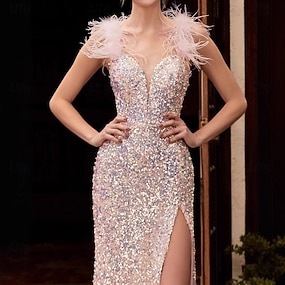 Dames Normaal Maxi-jurk Zwarte jurk Jurk met lovertjes Cocktail jurk Formele jurk Elegant Stijlvol Maxi Kap Bruiloft Bruiloft gast Speciale gelegenheden Slank Effen Mouwloos Diepe V-hals Blozend Roze