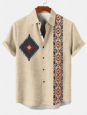 Voor heren Overhemd linnen overhemd retro-overhemden Vintage overhemd Etnisch shirt Tribal Dagelijks Blozend Roze blauw khaki Korte mouw Strijkijzer Zomer Lente Kleding