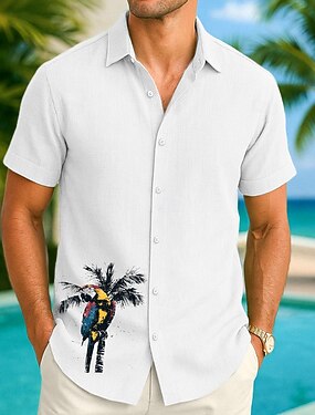 Voor heren Overhemd Linnen overhemd Zomer overhemd Strand Kleding Overhemd met knopen Bloemenprint Vakantie Curise Wit Marineblauw Groen Khaki Korte mouw Kraag Zomer Lente zomer Kleding