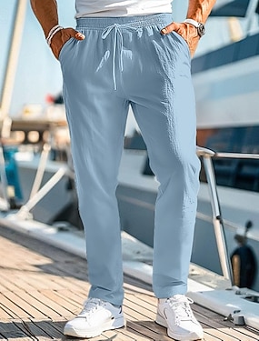 Voor heren Linnen broek Broek Zomerbroek Wijde broek Strandbroeken Trekkoord Elastische taille Recht been Effen Comfort Ademend Volledige lengte Casual Dagelijks Feestdagen Vakantie Klassieke Stijl