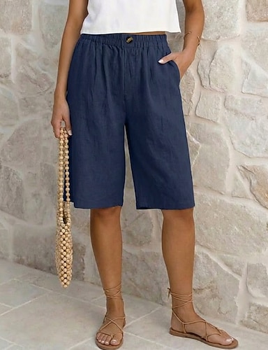 Dames korte broek Capri broeken Korte broek Zomer korte broeken Vakantie Modieus Streetwear Knielengte Hoge taille Effen Zak Elastische taille Ademend Comfortabel Rekbaar Dagelijks Vakantie Straat