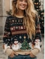 Dames Trui Stoppen Dagelijks Casual Grafisch Sneeuwpop Geribd Strakke ronde hals Gebreid Afdrukken Lange mouw Normale tops breien Kerstmis Buiten Weekend Wit Herfst Winter