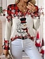 Dames Vest Dagelijks Stijlvol Bloemig Grafisch Sneeuwpop Geribd Strakke ronde hals V-hals Knop Afdrukken Lange mouw Normale tops breien Buiten Weekend Blozend Roze Rood Herfst Winter