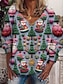 Dames Vest Vintage Dagelijks Etnische stijl Kleurgradatie Sneeuwpop Geribd Capuchon Zak Knop Afdrukken Lange mouw Lange tops breien Buiten Weekend Rood Herfst Winter