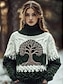 Dames Viking trui vakantie vintage dagelijks paisley geribbelde coltrui gebreide print lange mouwen normale tops gebreid buiten dagelijks weekend wit herfst winter