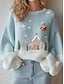 Dames Trui Stoppen Dagelijks Casual Grafisch Geribd Strakke ronde hals Gebreid Afdrukken Lange mouw Normale tops breien Kerstmis Buiten Weekend Licht Blauw Herfst Winter